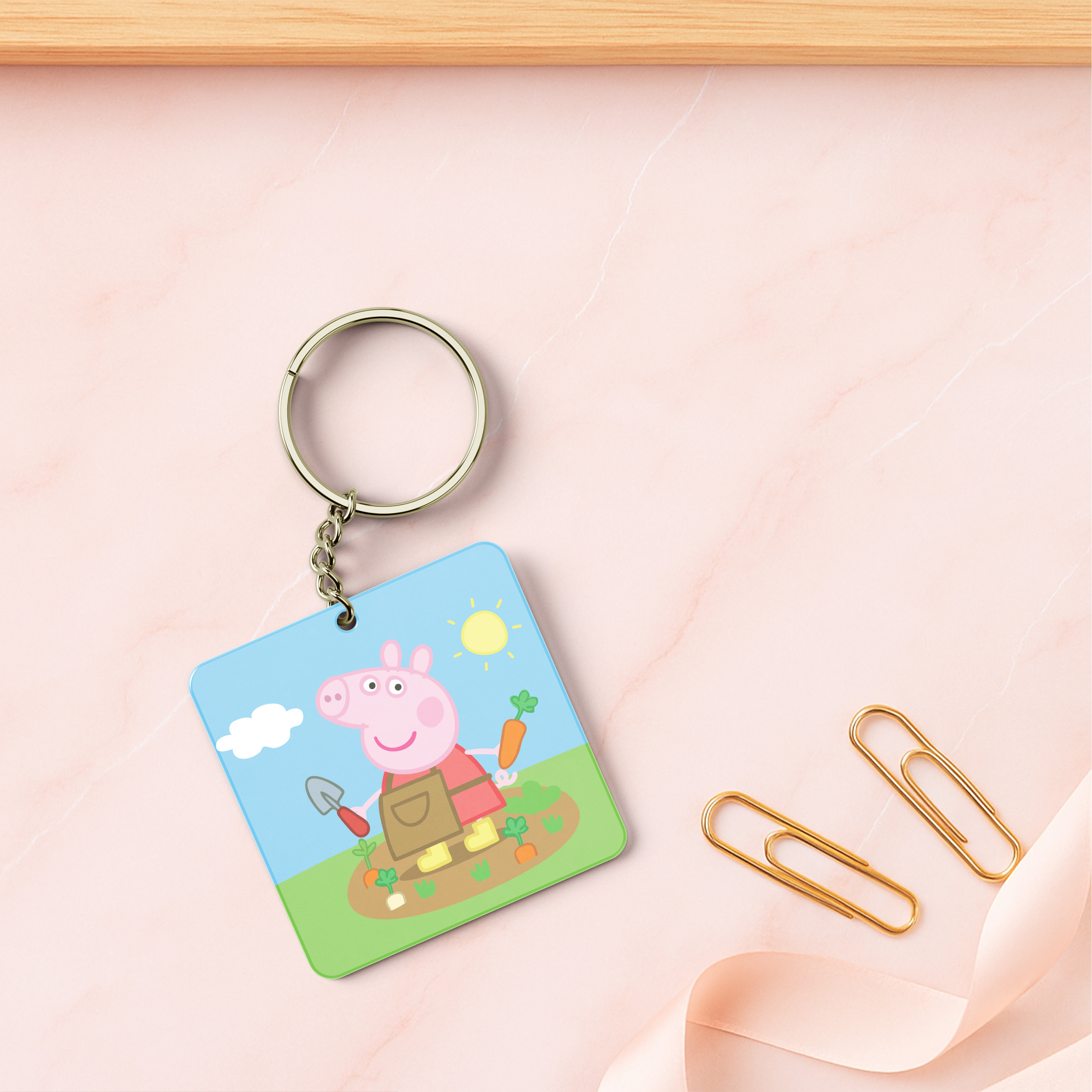 Ξύλινο μπρελόκ Peppa Pig κηπουρός Διαστάσεις: 4×4 Υλικό: Ξύλο