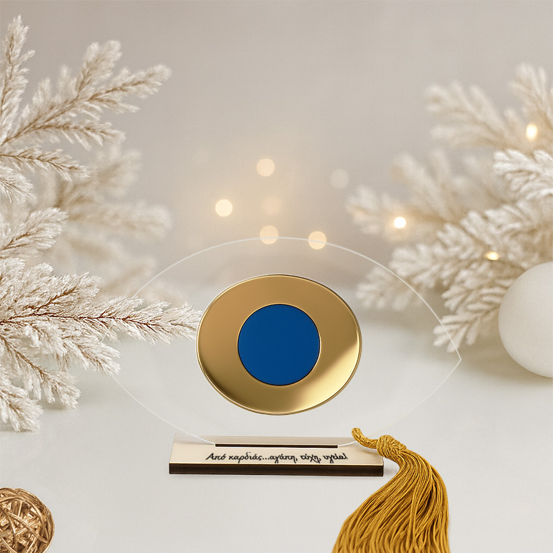 Γούρι μάτι μπλε με βάση σε διάφανο plexiglass