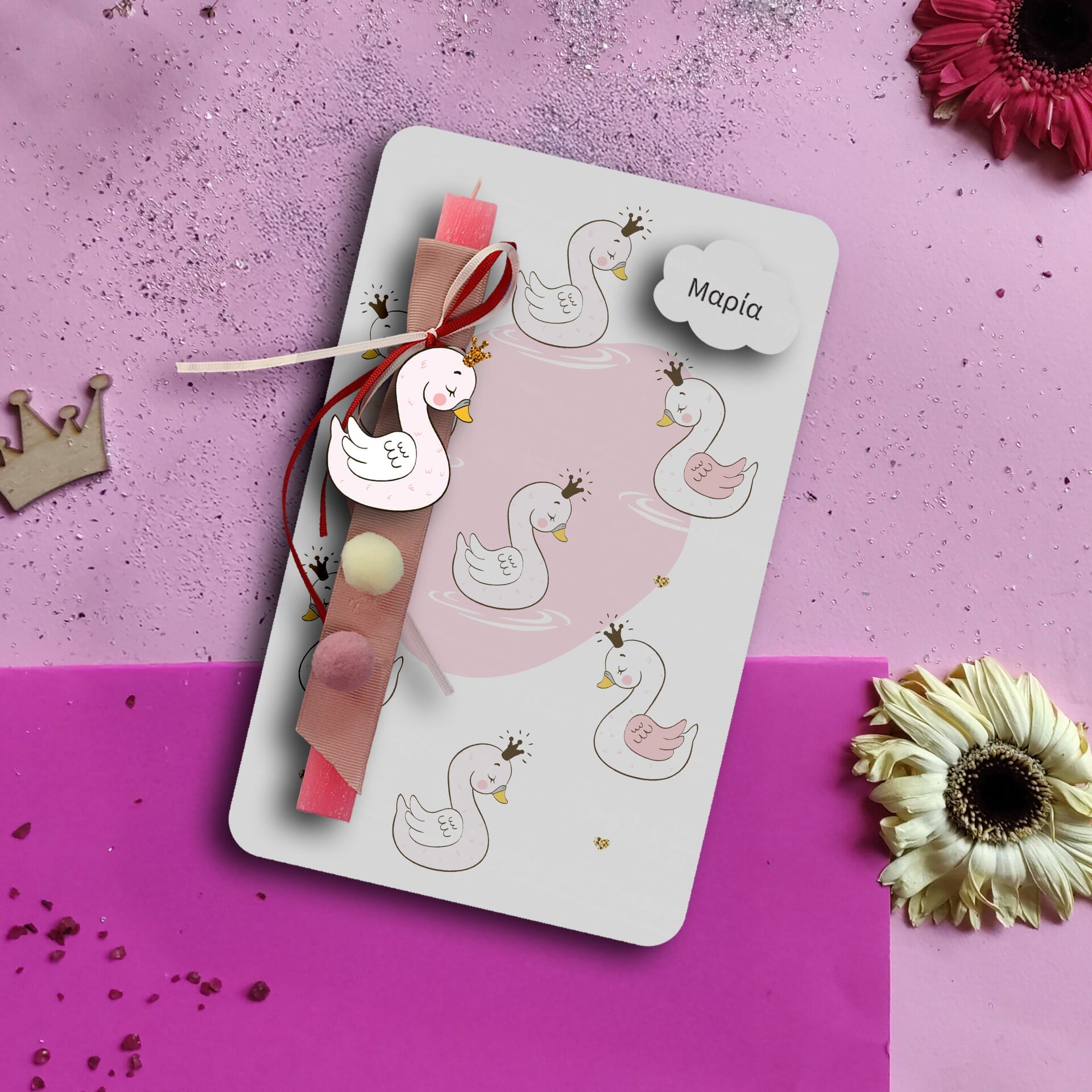 Ξύλινη λαμπάδα baby_swan