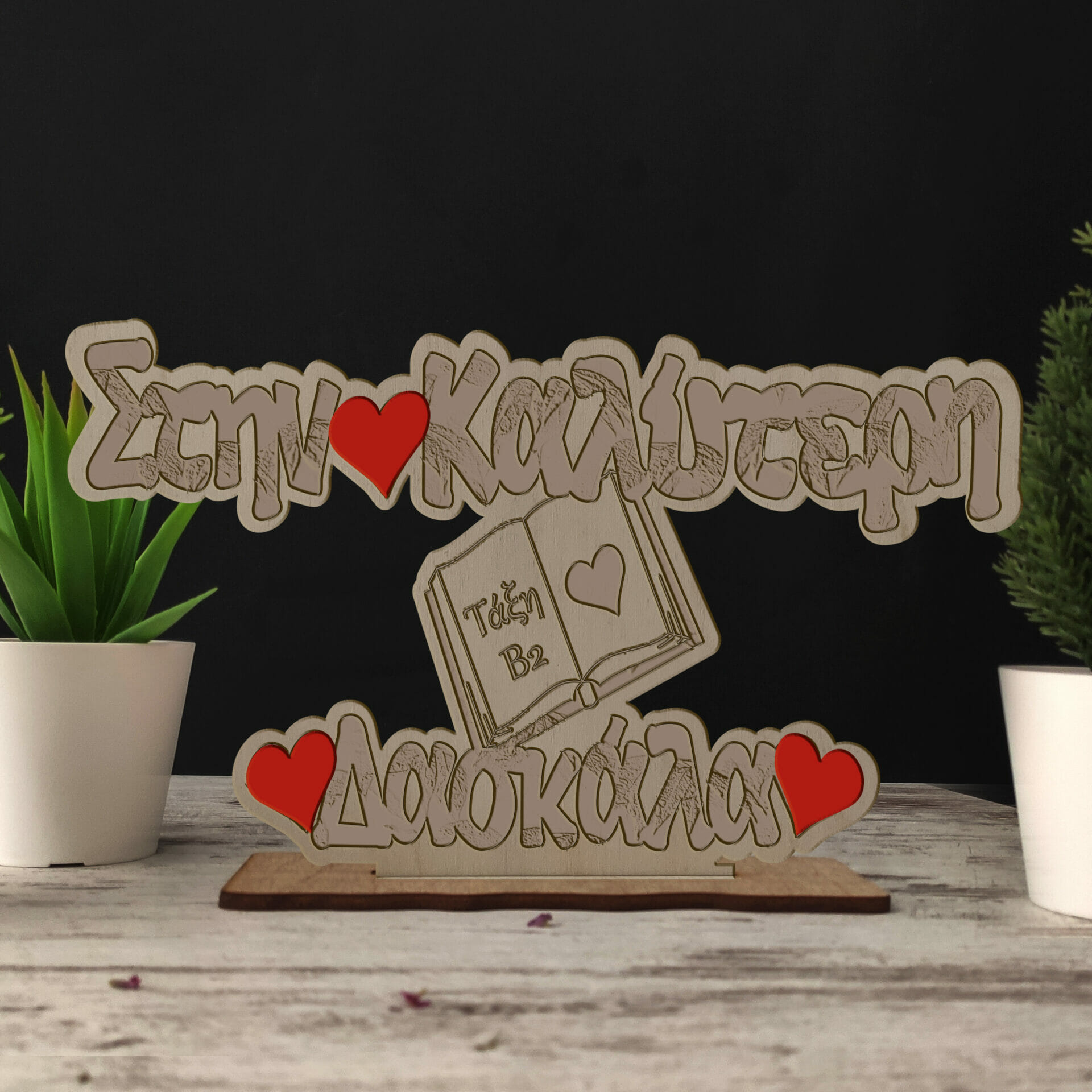 Ξύλινο διακοσμητικό stand δώρο για δασκάλους. Διαστάσεις:24×14 Υλικό: Ξύλο