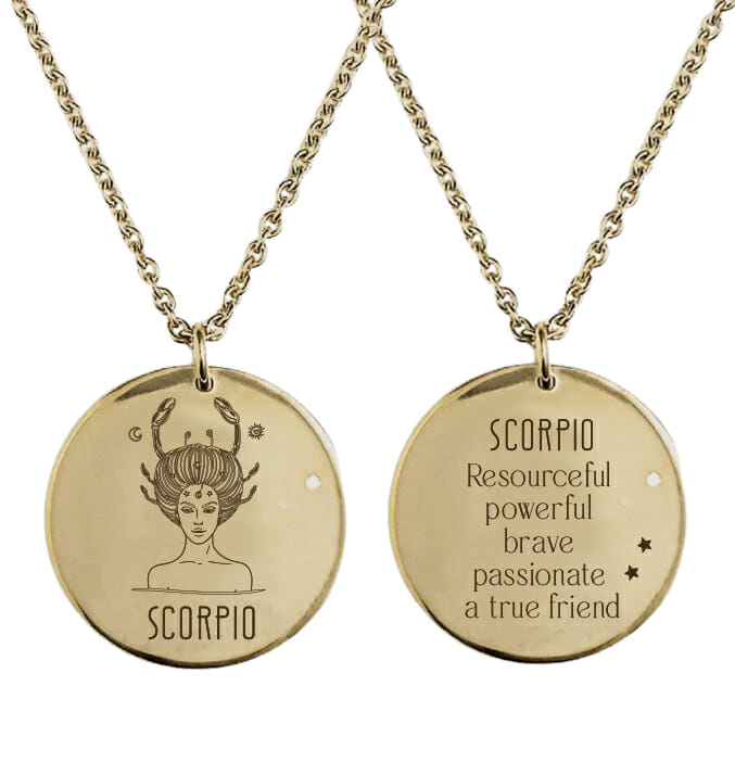 Κολιέ 2 όψεων με το ζώδιό σας και τα χαρακτηριστικά του χαραγμένα από πίσω.