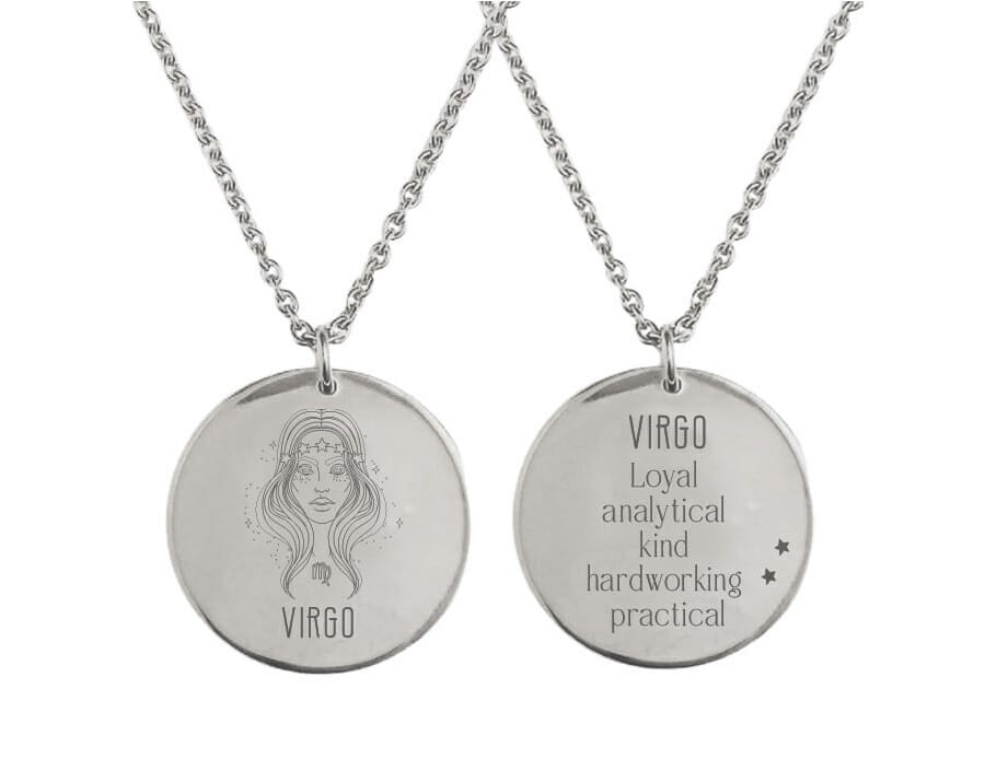 Κολιέ 2 όψεων με το ζώδιό σας και τα χαρακτηριστικά του χαραγμένα από πίσω.