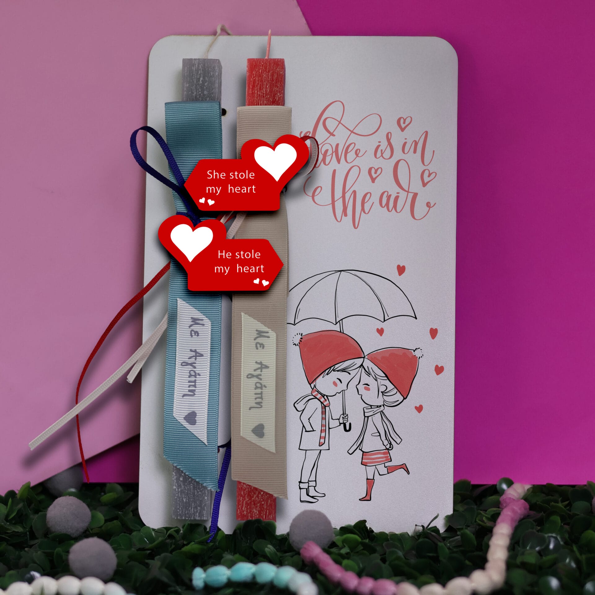 Ξύλινη λαμπάδα couple love is in the air